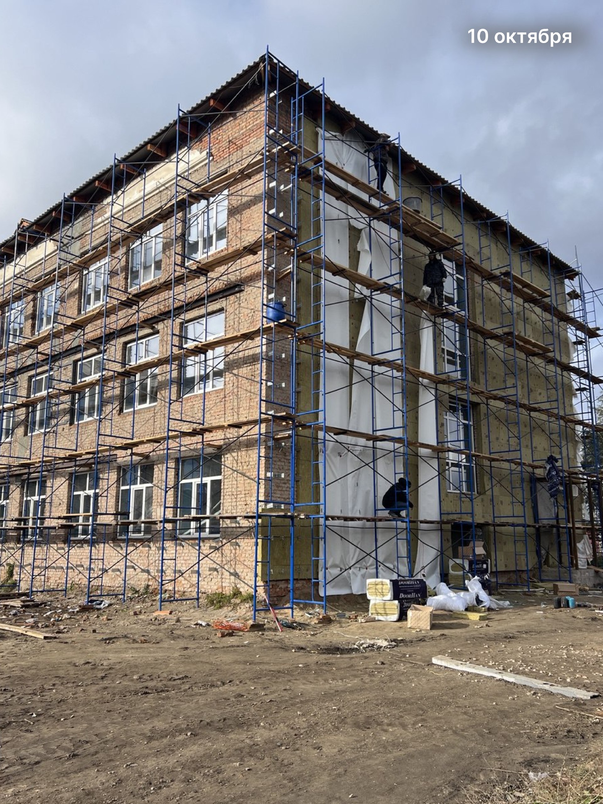 На объекте ежедневно трудятся более 40 специалистов, которые выполняют комплекс мероприятий по обновлению здания. На текущий момент работы ведутся по нескольким направлениям. Специалисты осуществляют монтаж новой кровли. На втором и третьем этажах активно ведется установка системы отопления: монтируются радиаторы, прокладываются магистрали и выполняются необходимые сварочные работы. Параллельно началась укладка плитки на лестничных маршах.