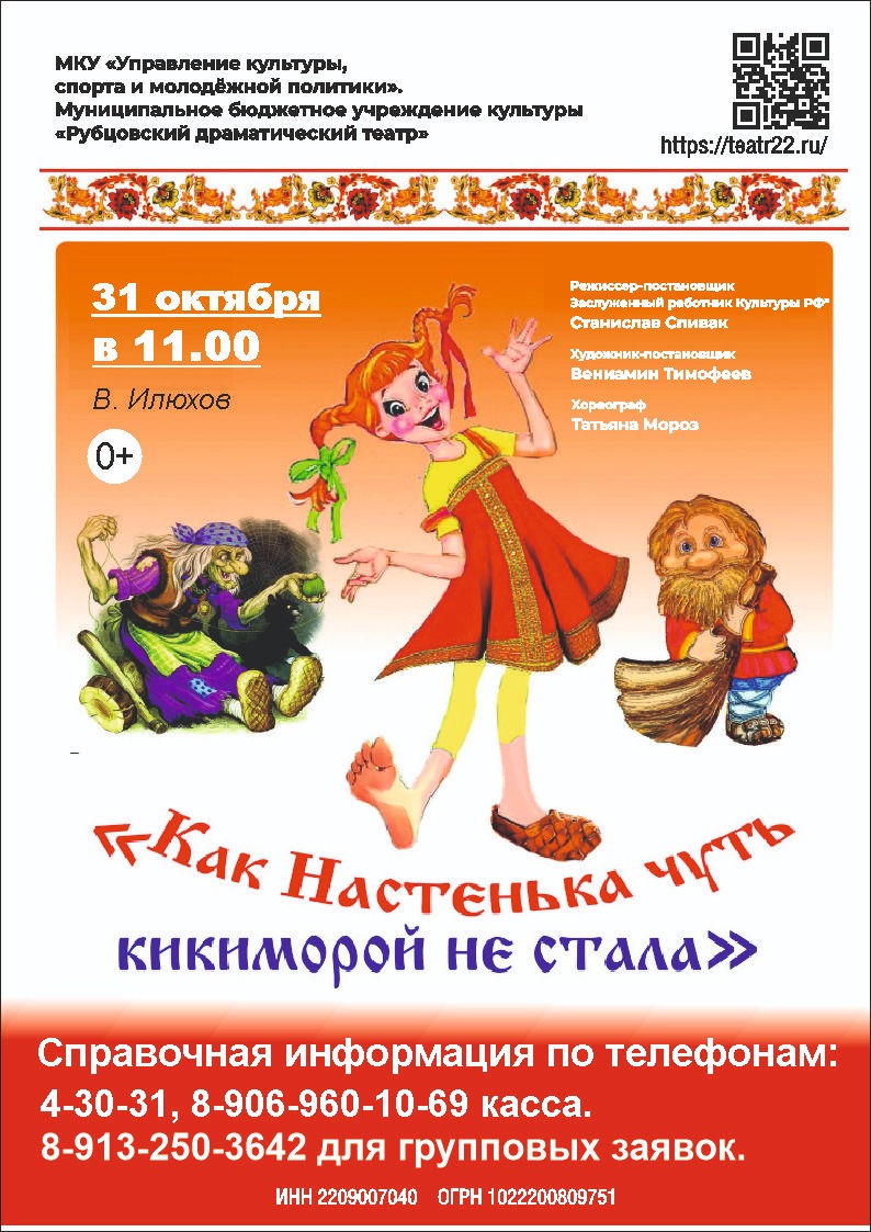 Рубцовский драматический театр уделяет большое внимание репертуару детских спектаклей. Совсем недавно состоялась премьера спектакля «Кошкин дом» по пьесе Самуила Маршака, и уже сейчас артисты работают над новой постановкой — «Как Настенька чуть кикимирой не стала» по пьесе А. Илюхова. Пьеса написана современным языком и рассказывает, как благодаря положительным героям неряха Настенька перевоспиталась. Спектакль обещает быть интересным музыкальным представлением.