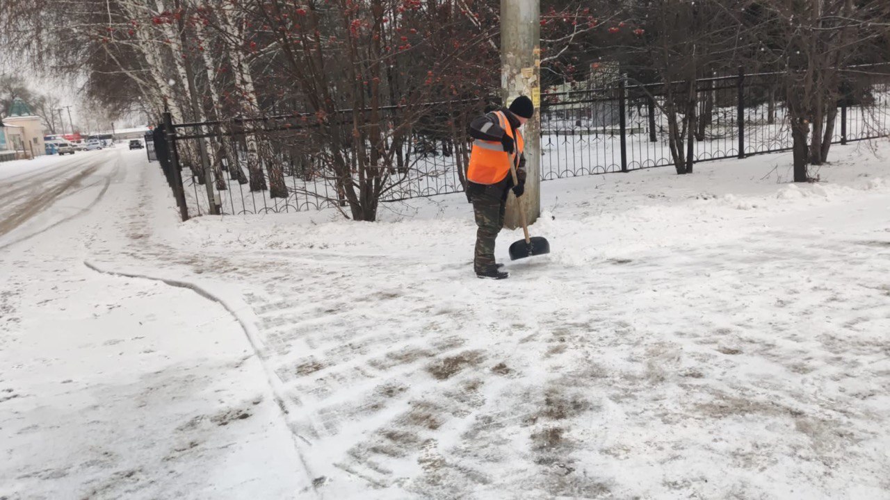 Ежедневно дворники расчищают тротуары, пешеходные зоны, остановочные павильоны, убирают мусор, поддерживая чистоту городских территорий.