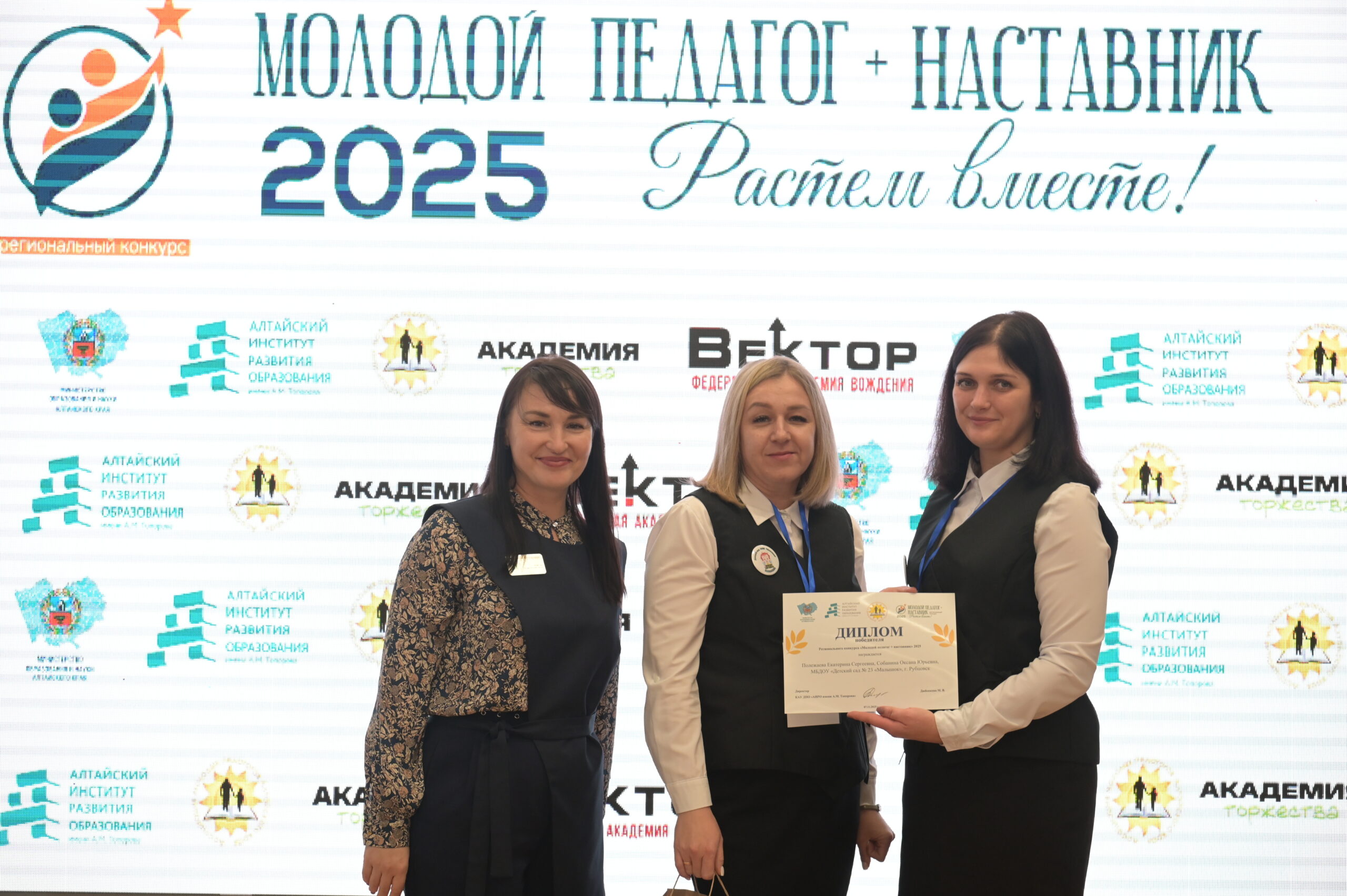 Воспитатели Екатерина Полежаева и Оксана Собанина из детского сада № 23 «Малышок» Рубцовска завоевали первое место в номинации «Дошкольное образование» регионального конкурса «Молодой педагог + наставник». Финал конкурса состоялся в рамках межрегионального форума «Дни образования и науки на Алтае – 2025» и собрал 20 наставнических пар со всего края. Участникам предстояло пройти несколько испытаний: представить мастер-класс «Связь поколений», выступить с TED-докладом «Энергия успеха». Каждая пара делилась своими наставническими практиками и отвечала на вопросы конкурсного жюри.