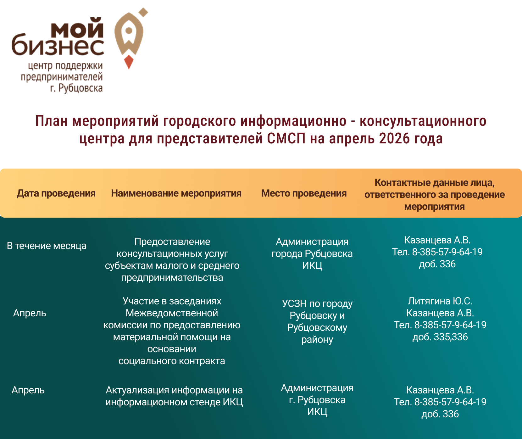 В целях обеспечения своевременной готовности участников оборота к вступлению в силу требований об обязательной маркировке товаров средствами идентификации отдел по развитию предпринимательства и рыночной инфраструктуры Администрации Рубцовска информирует о проведении соответствующих обучающих дистанционных мероприятий, запланированных на апрель.