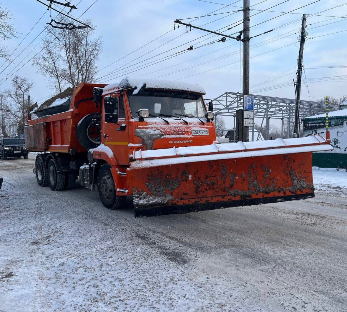 На борьбу со снегом вышли: - три комбинированные дорожные машины (КДМ), которые расчищают проезжую часть и обрабатывают её противогололедными материалами;