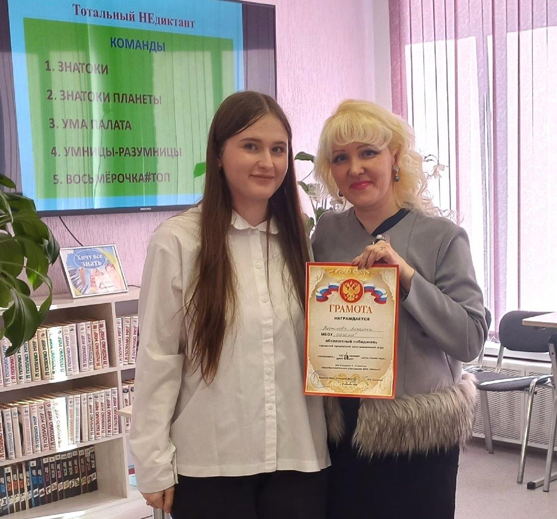 Был определен и абсолютный победитель, написавший диктант без единой ошибки. Им стала ученица восьмого класса школы №15 Анжелика Кузнецова.
