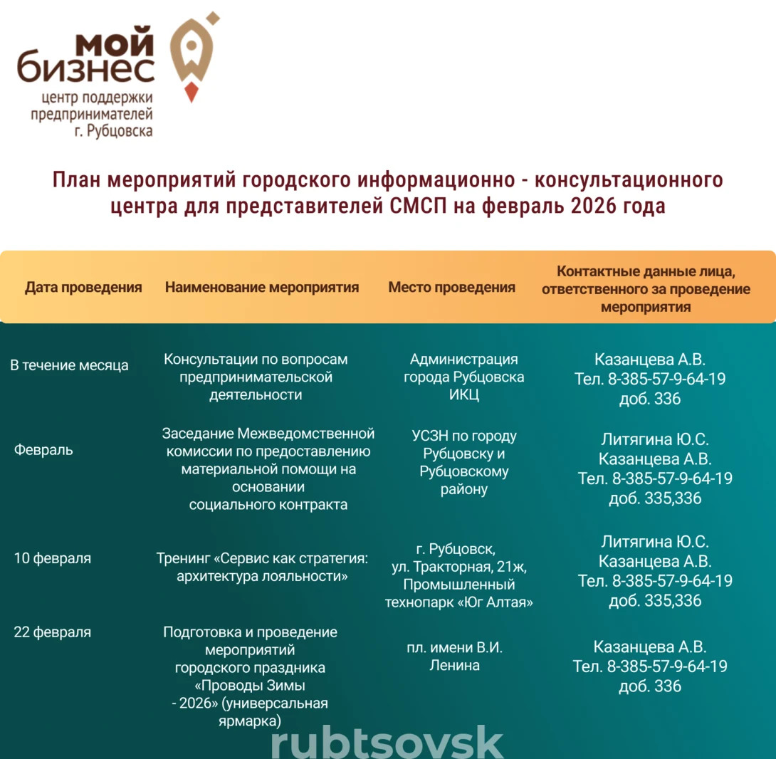 Оперативно узнавайте главные новости в официальных каналах Администрации города Рубцовска в MAX и ВКонтакте. Центр поддержки предпринимателей ТранспортДля садоводов Рубцовска возобновляют работу сезонные автобусные маршруты Чрезвычайные ситуации, Гражданская оборонаО гидрологической ситуации Формирование современной городской среды, БлагоустройствоСтартовал набор волонтёров для Всероссийского голосования за объекты благоустройства