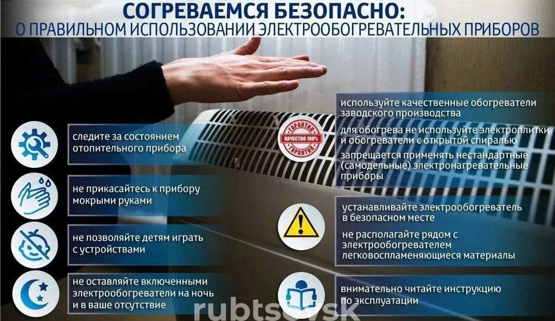 Уважаемые рубцовчане! По прогнозам синоптиков, на ближайшей неделе ожидается аномально холодная погода. В связи с этим ТО НД и ПР № 4 УНД и ПР ГУ МЧС России по Алтайскому краю напоминает гражданам о необходимости соблюдения правил пожарной безопасности при эксплуатации электрообогревательных приборов.