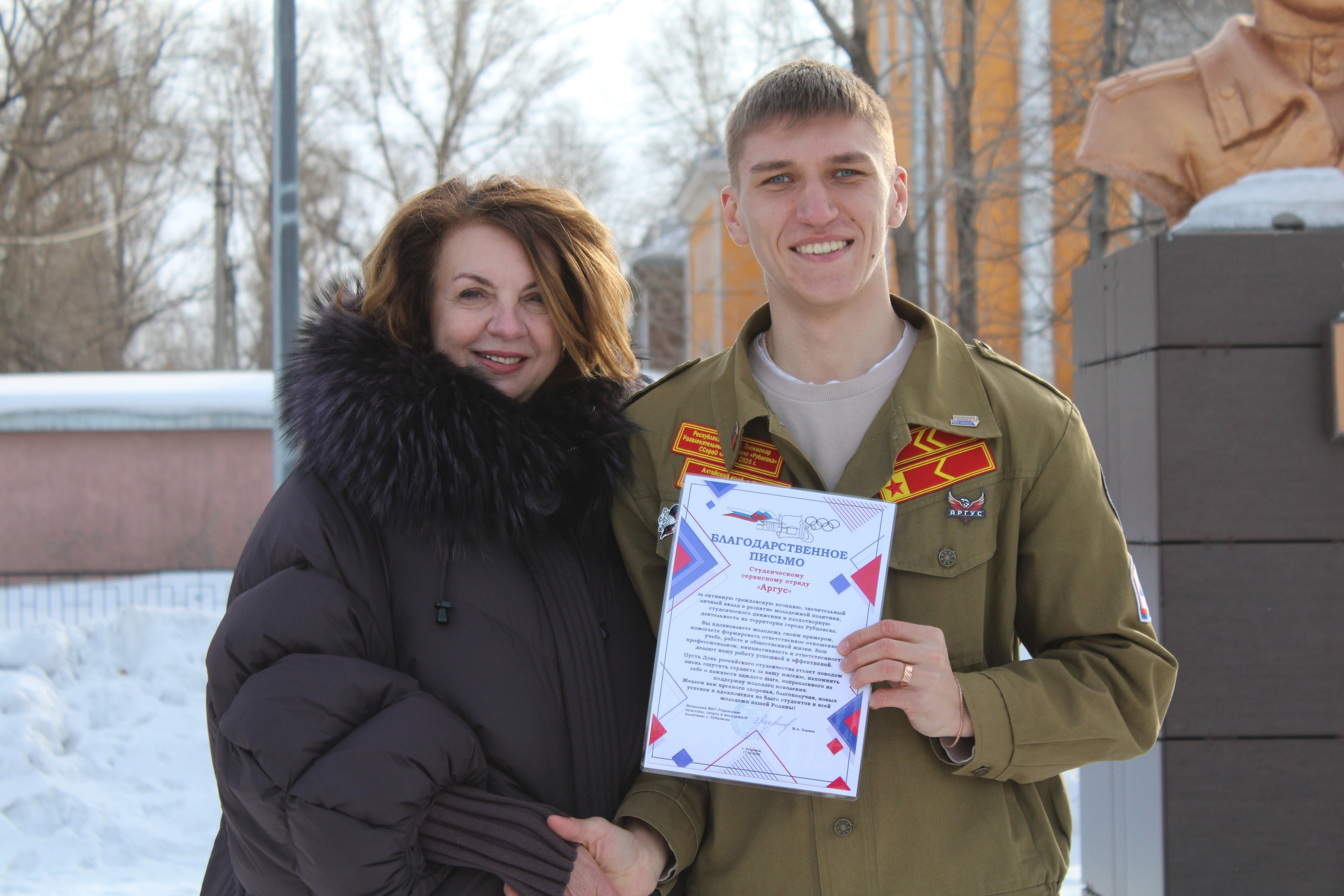 В рамках мероприятия состоялось вручение благодарственных писем. Ребята были отмечены за активное участие в акции «Снежный десант. Сила в единстве». Также наград удостоились бойцы за активную гражданскую позицию, значительный личный вклад в развитие молодежной политики и студенческого движения, а также за плодотворную деятельность на территории города Рубцовска.